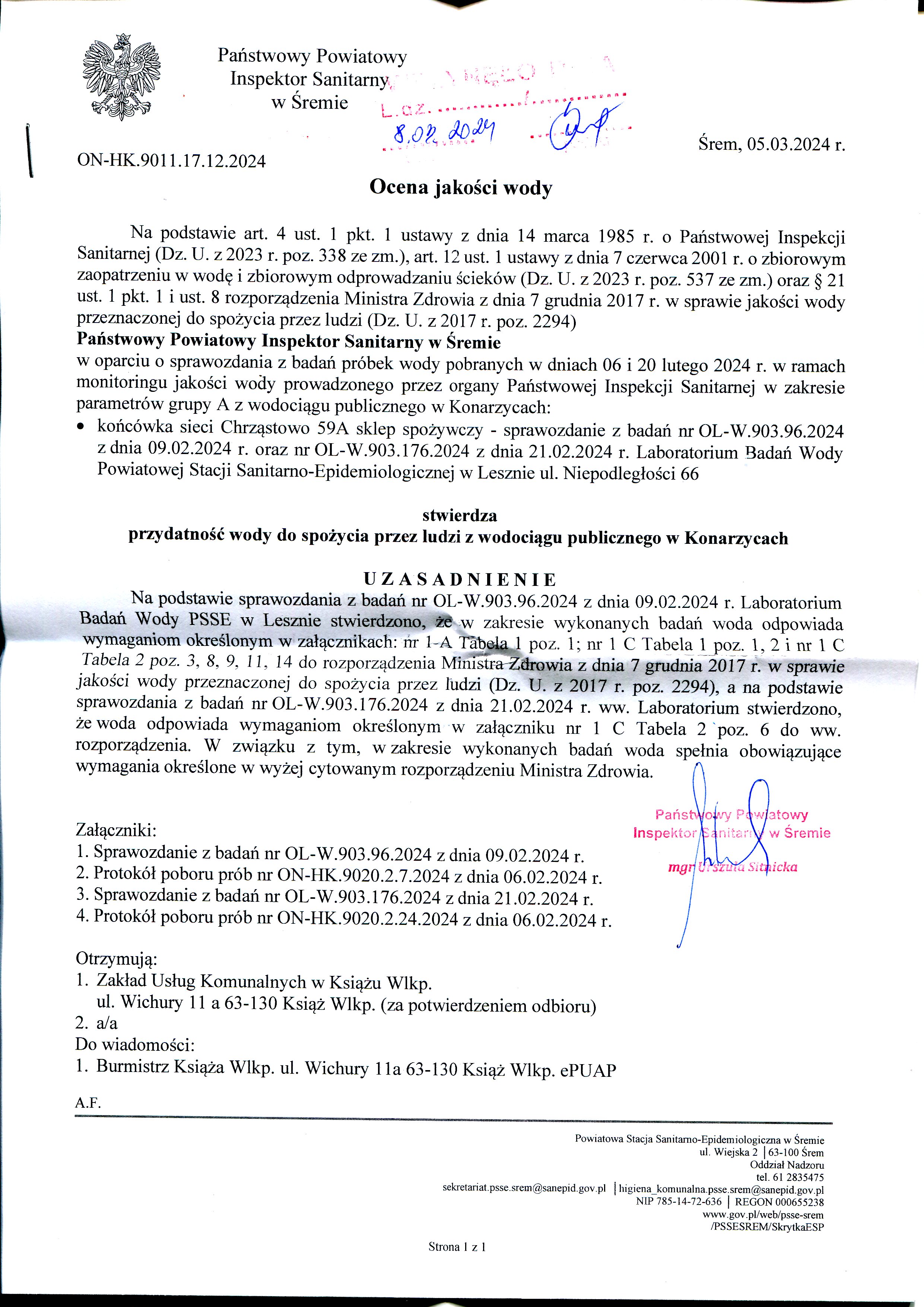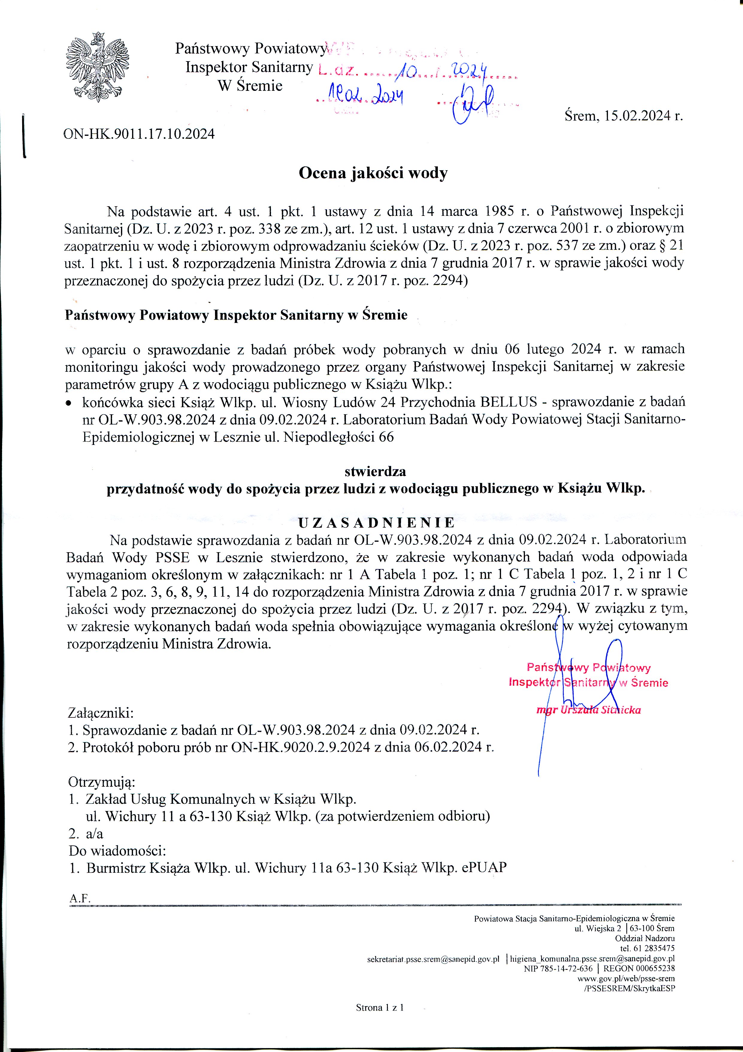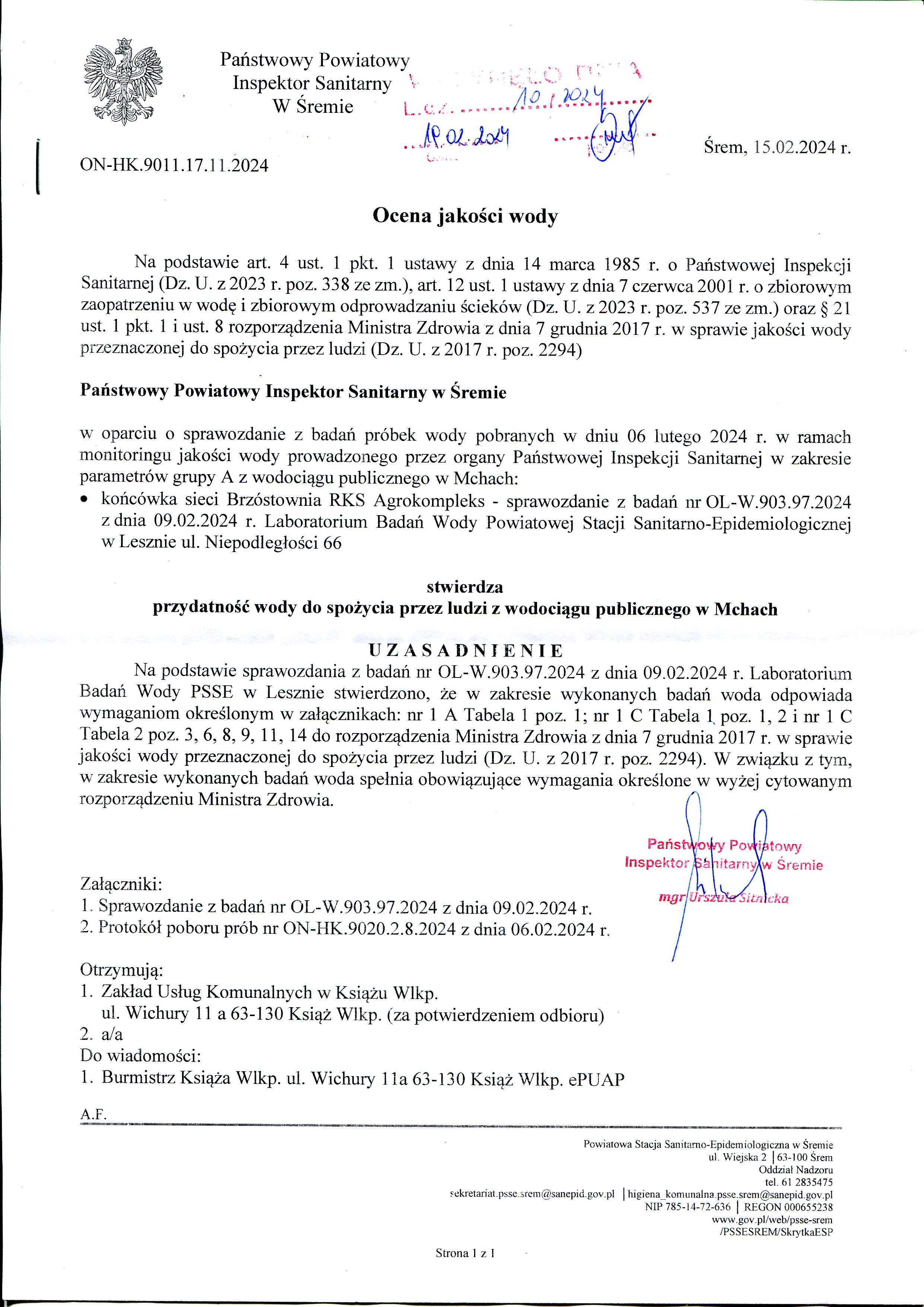 OCENA JAKOŚCI WODY LUTY 2024 R.