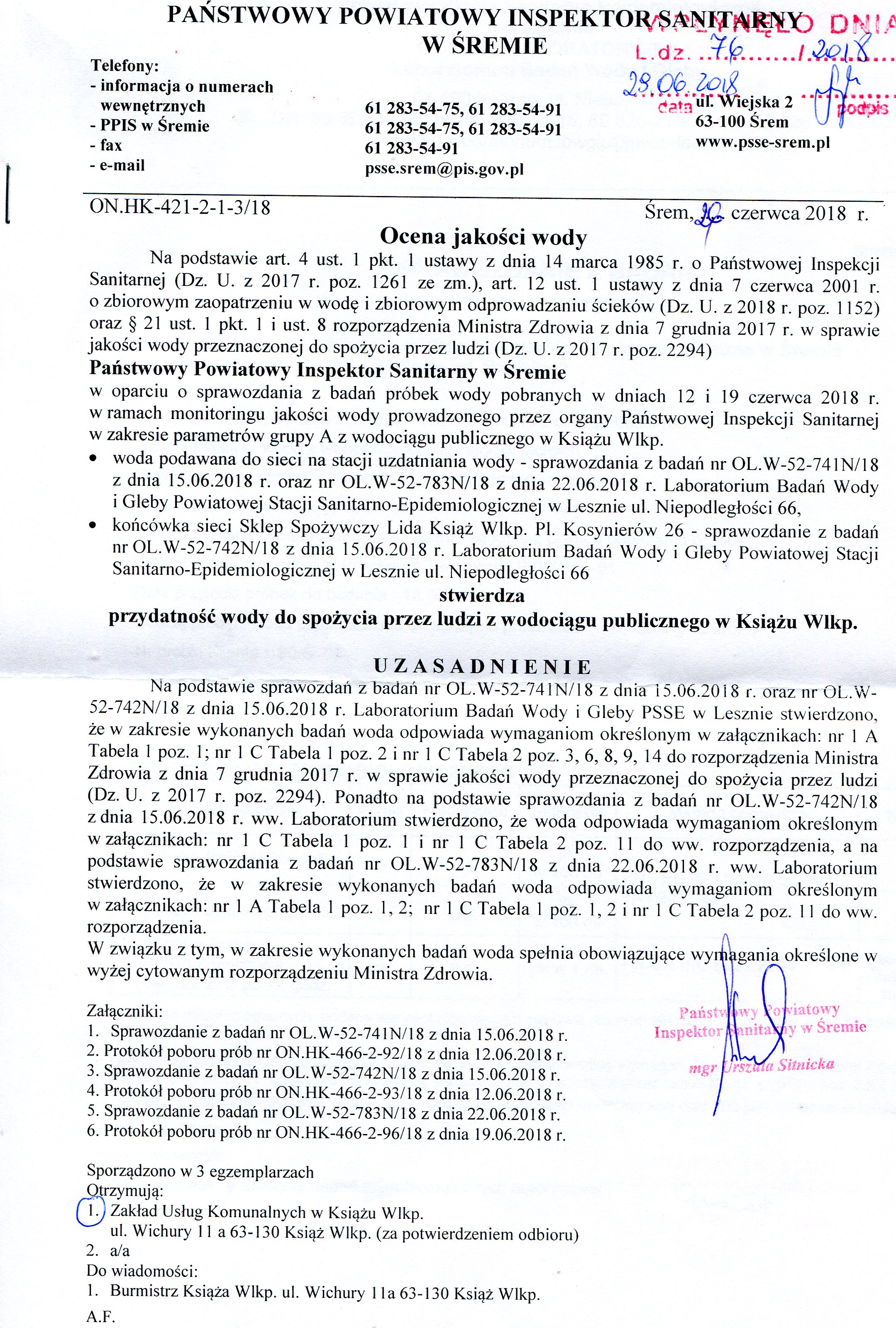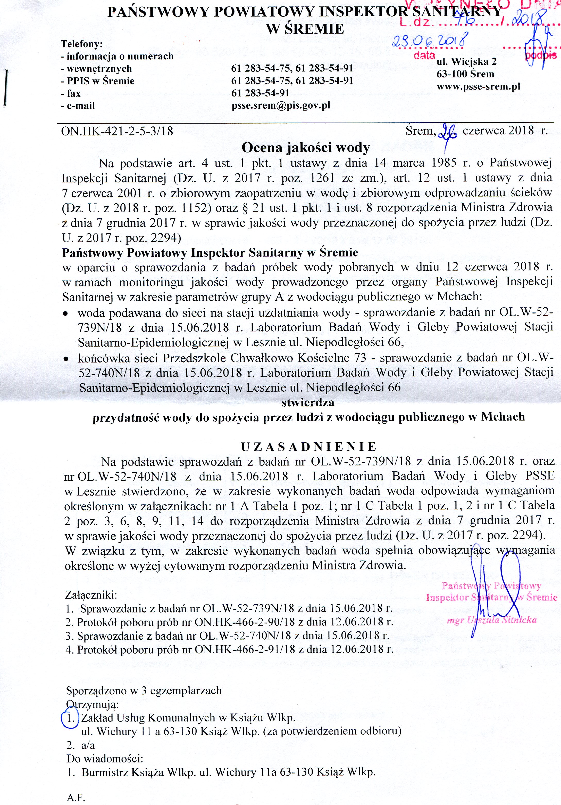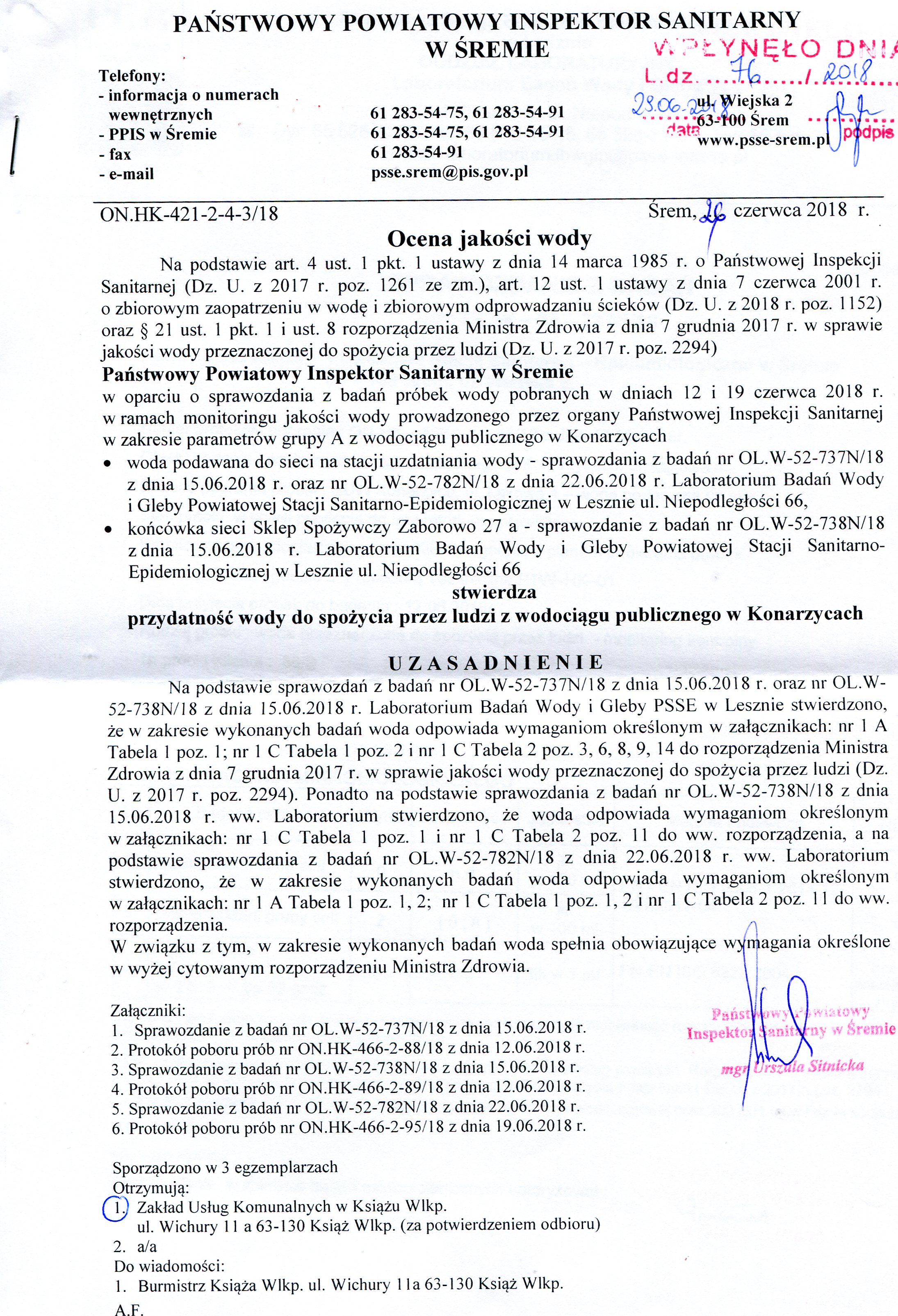 Ocena jakości wody – SUW Książ Wlkp. Ocena jakości wody – SUW Konarzyce Ocena jakości wody – SUW Mchy